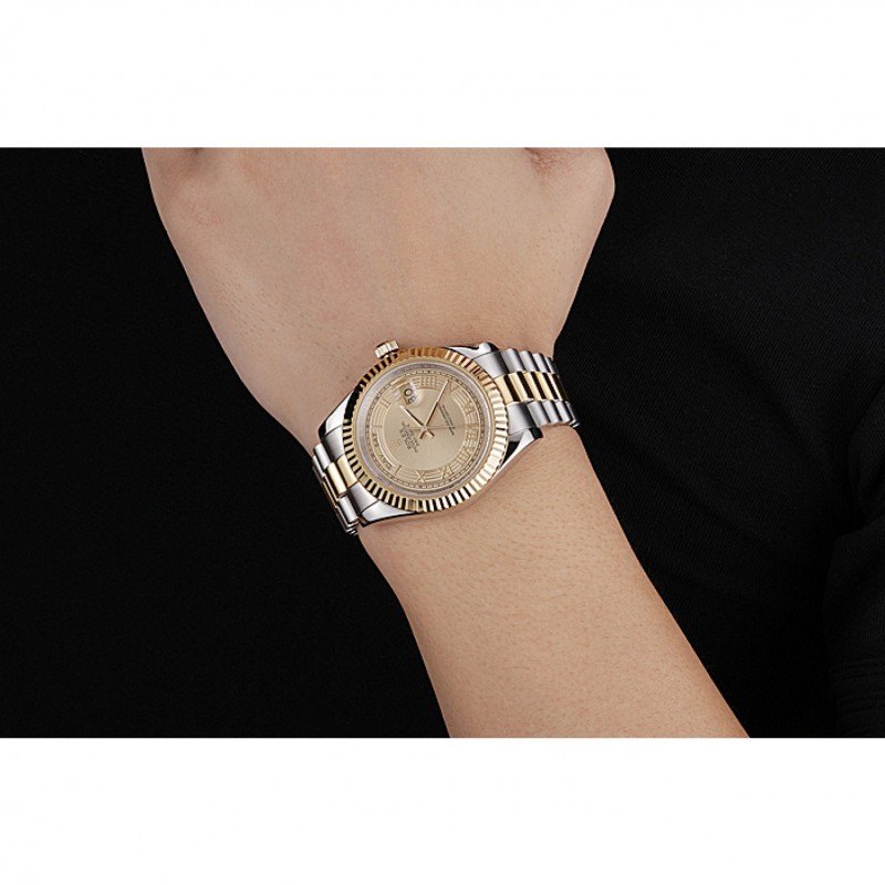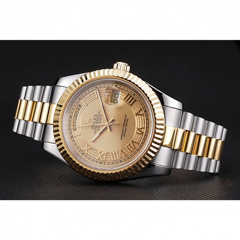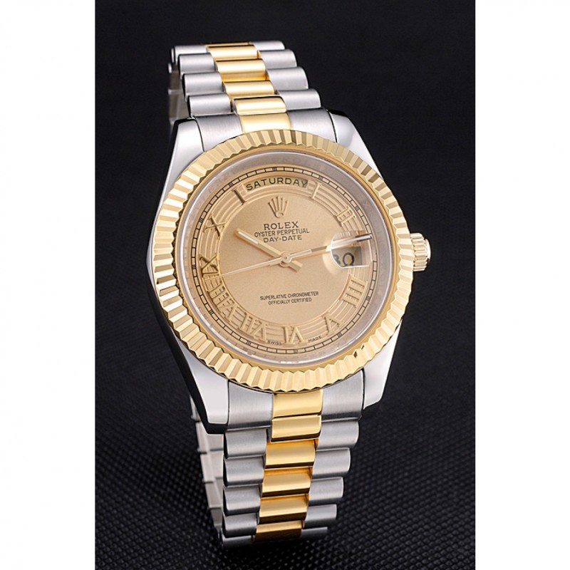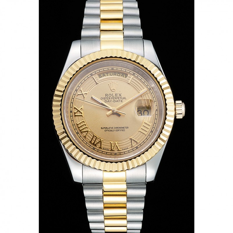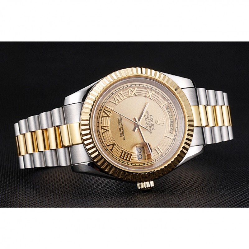 SS Replique Montre Day-Date Rolex Bicolore en acier inoxydable plaqué or 18 carats d’or Cadran