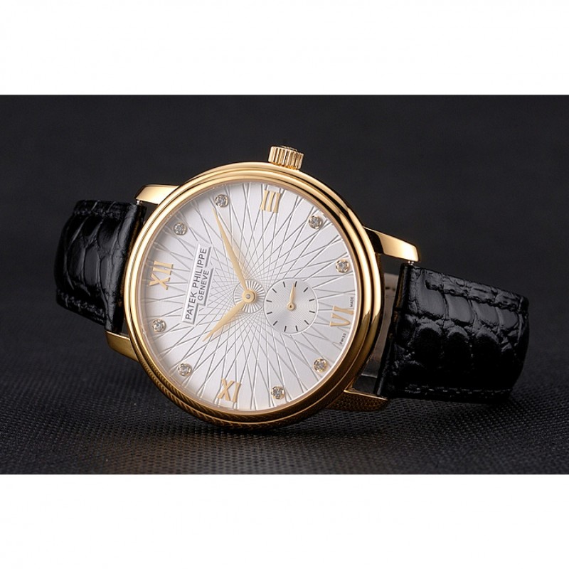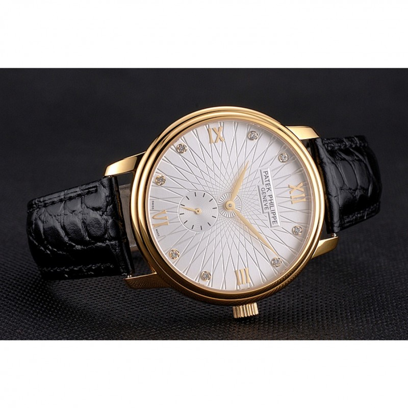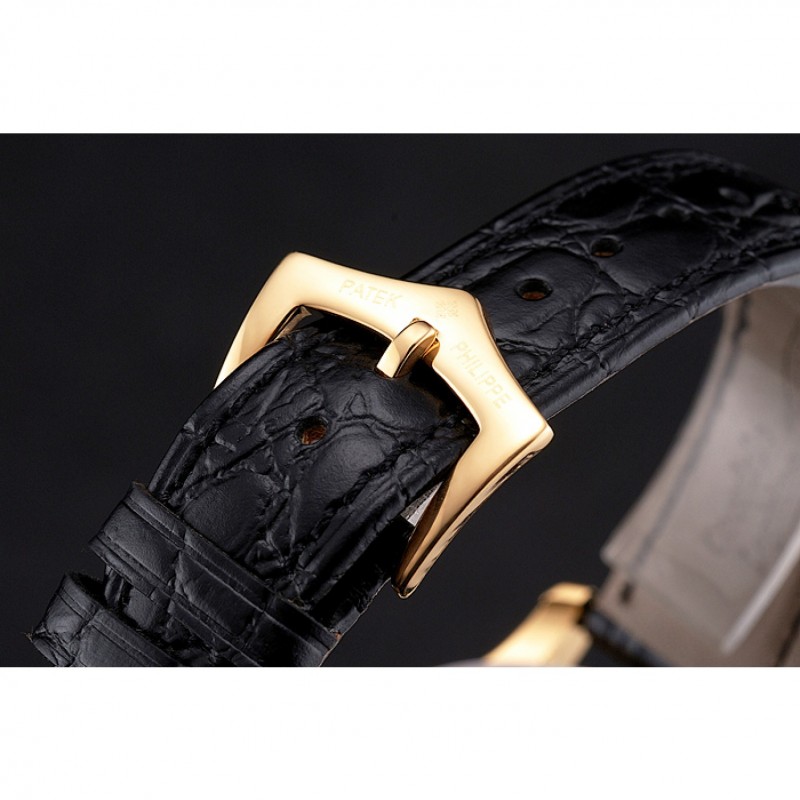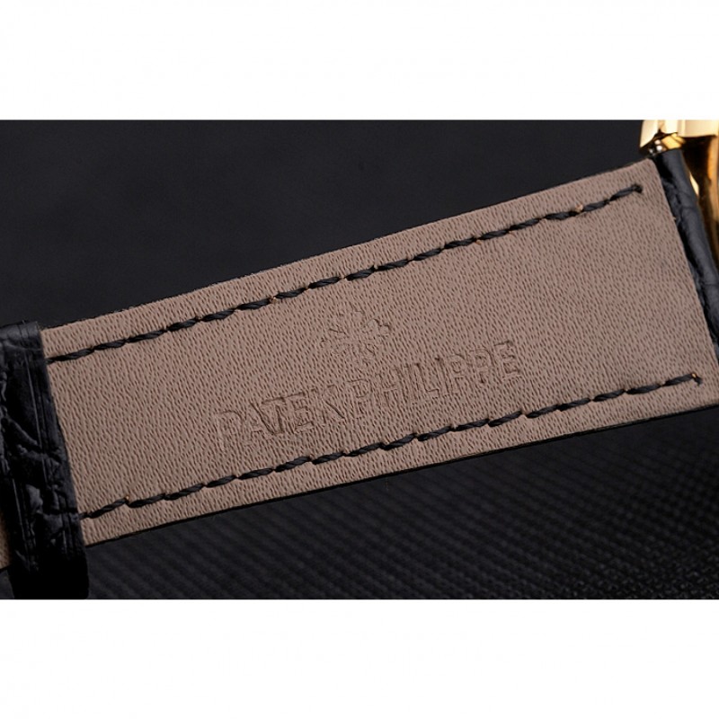 Bracelet:Patek Philippe et logo chaleur bracelet en cuir de crocodile noir en relief avec Patek Philippe et le logo inscrit or jaune 18 carats plaqué fermoir crochet boucle