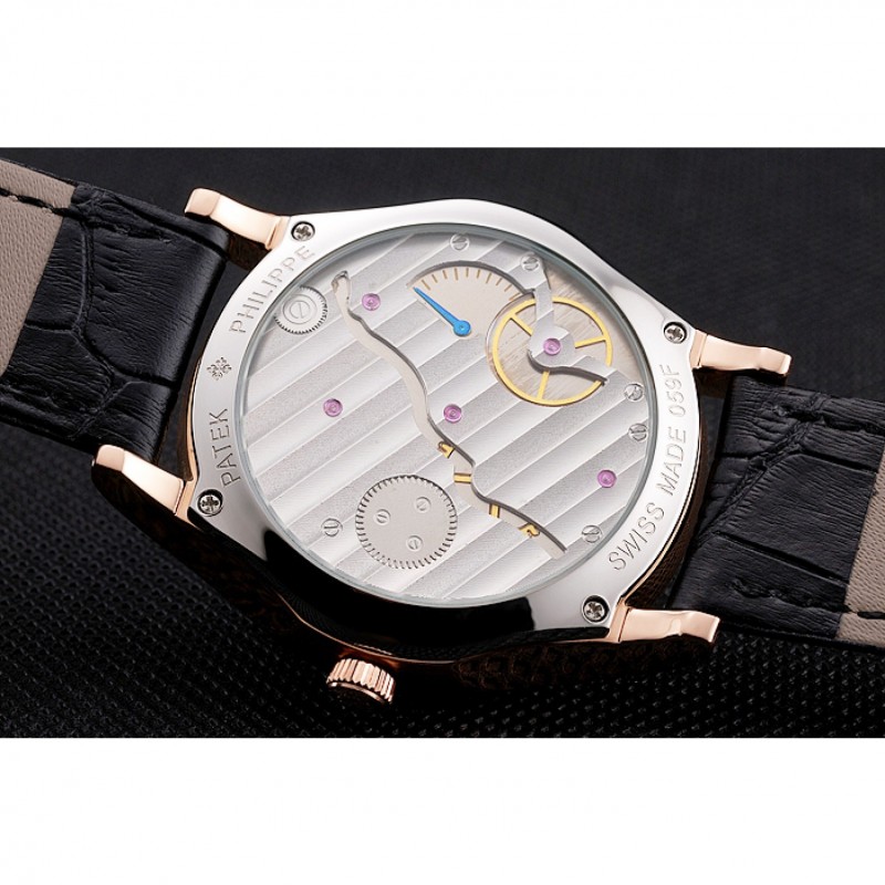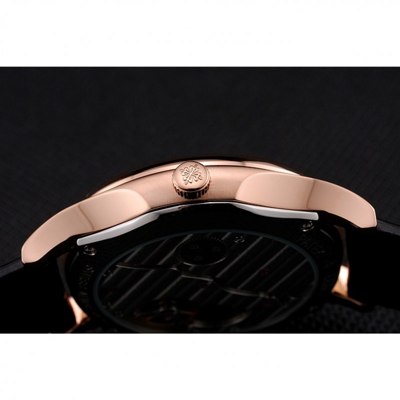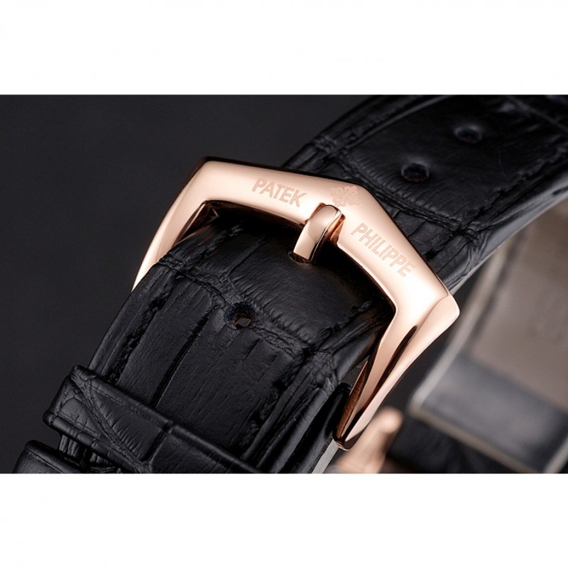 Bracelet:logo et Patek Philippe chaleur en relief sangle crocodile en cuir marron avec logo et Patek Philippe gravés 18k rose plaqué or fermoir crochet-boucle