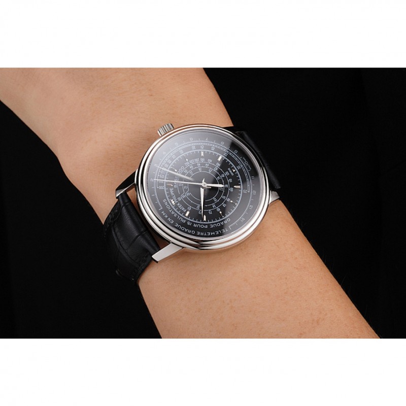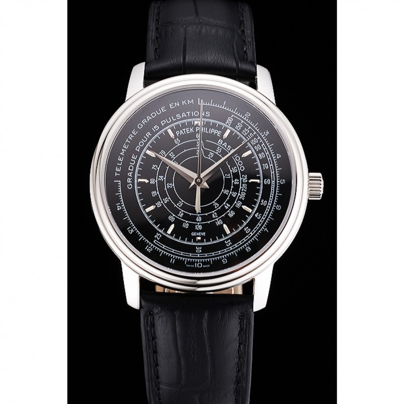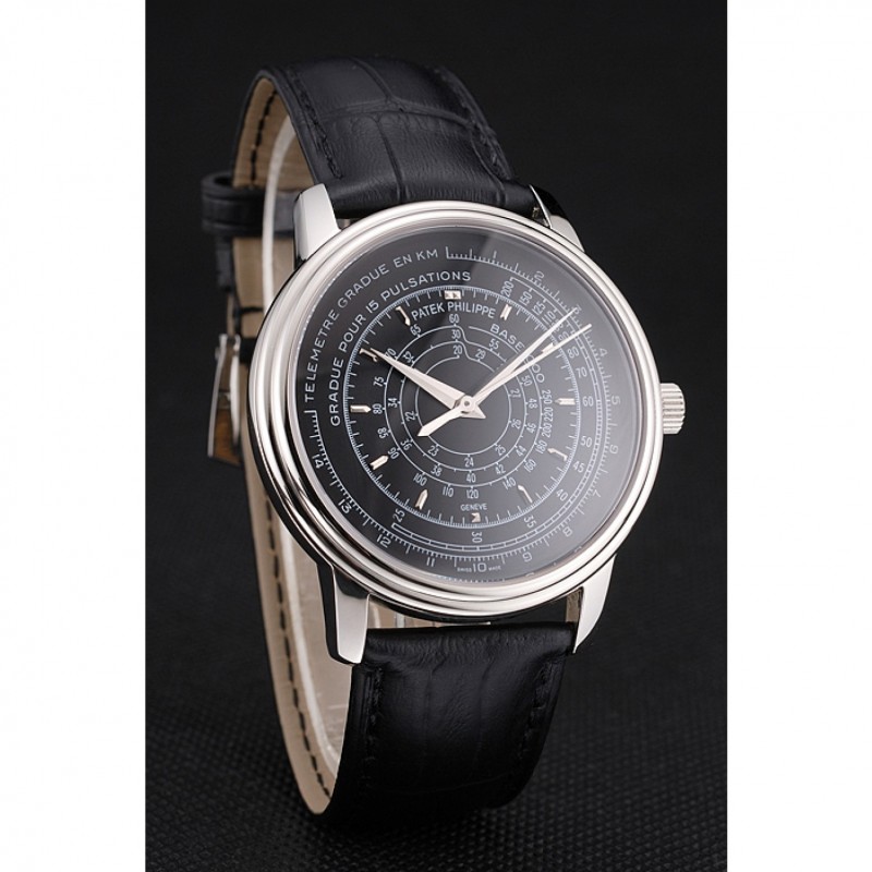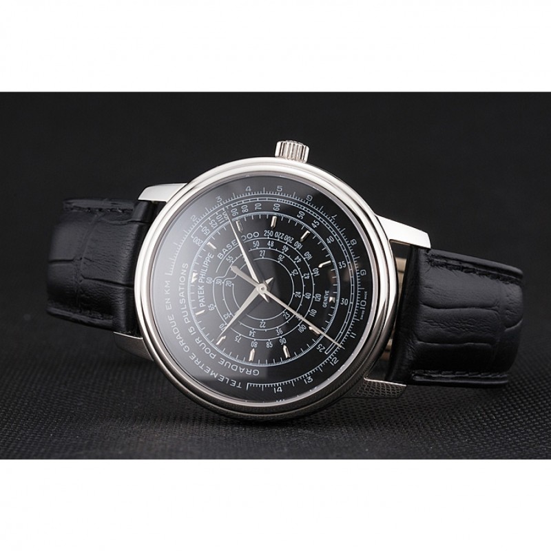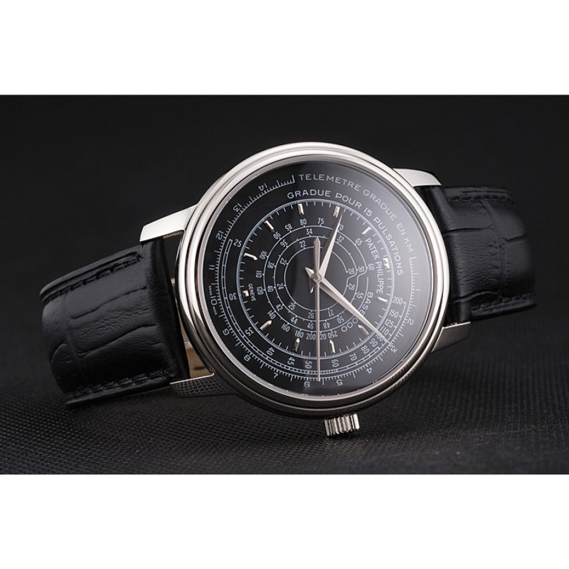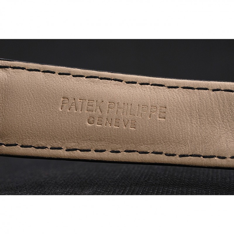 Bracelet:Patek Philippe chaleur Geneve bracelet en cuir crocodile noir gaufré avec fermoir crochet-boucle en acier inoxydable poli