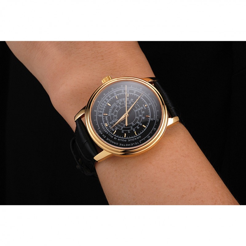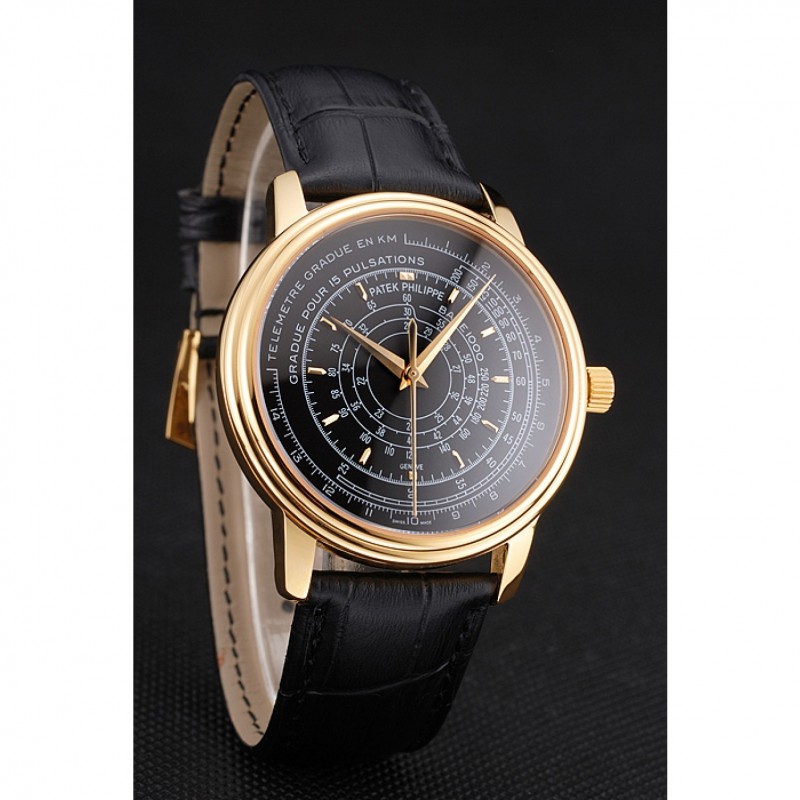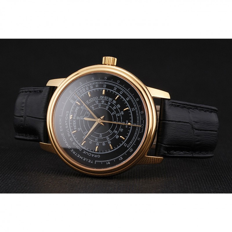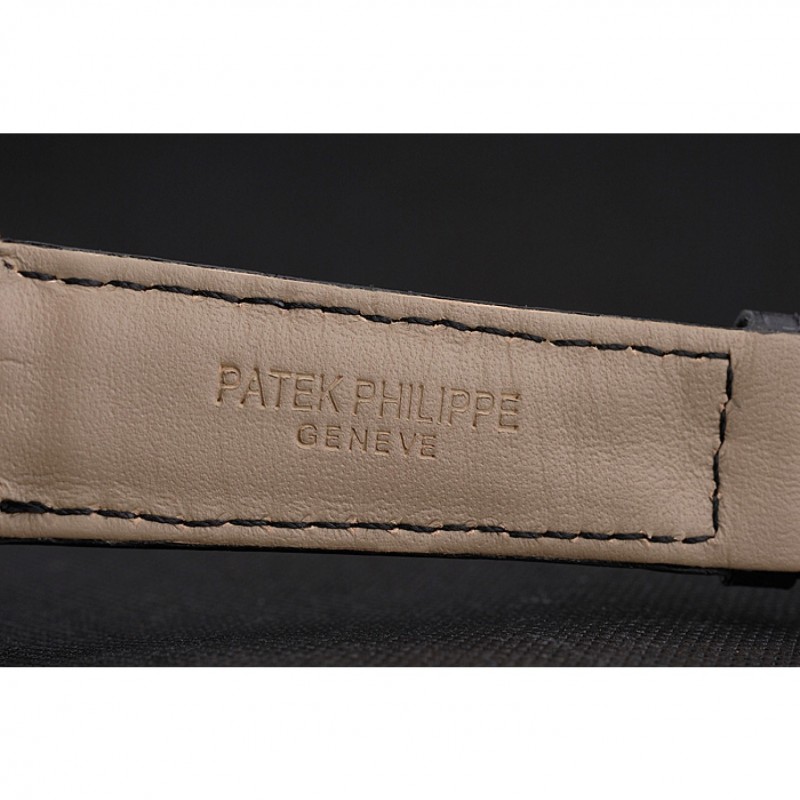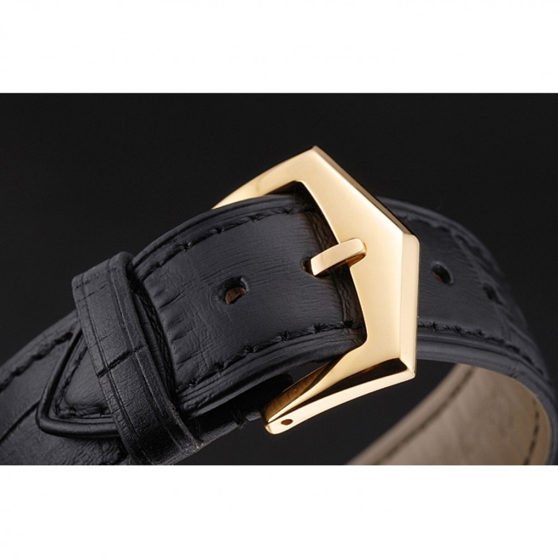 Bracelet:Patek Philippe Geneve chaleur bracelet en cuir crocodile noir en relief avec 18k plaqué or jaune fermoir crochet-boucle