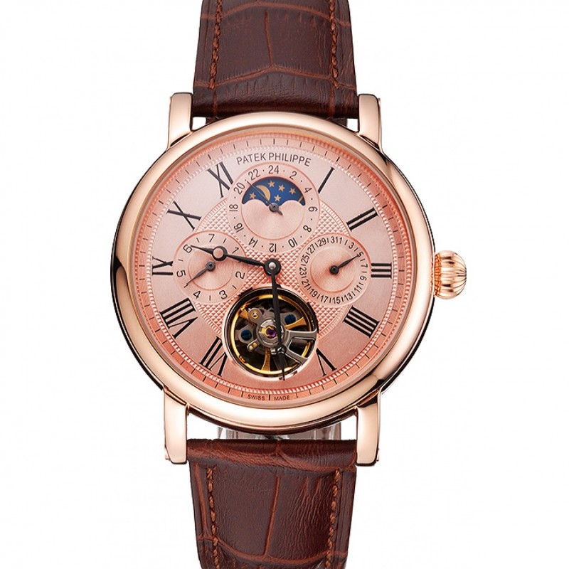 Retour:18k plaqué or jaune enfichable à l’arrière avec des gravures Patek Philippe et mécanique révélant transparent fenêtre