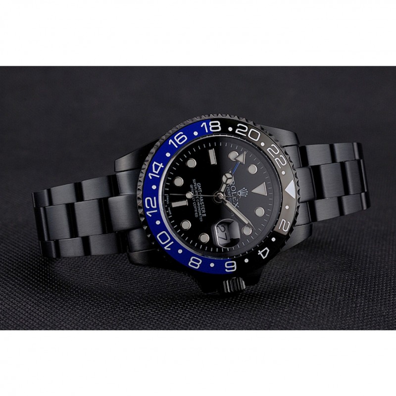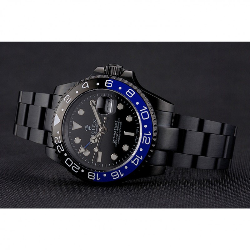 Suisse Rolex GMT Master II cadran noir bleu et lunette noire PVD noir Boîtier et bracelet