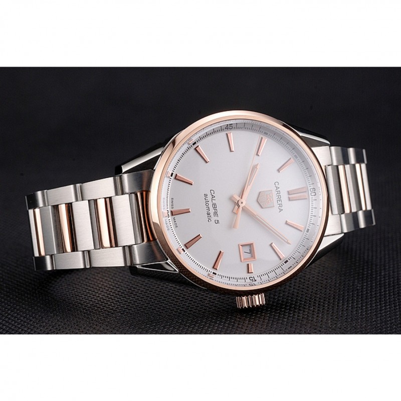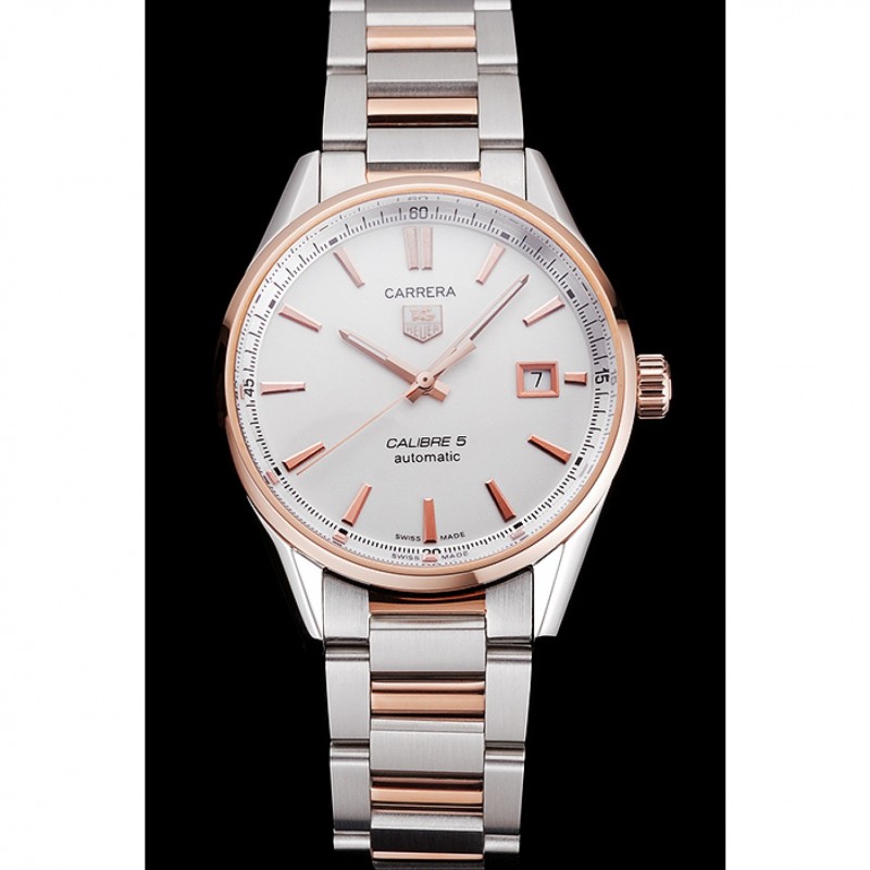 Suisse Tag Heuer Carrera Calibre 5 Cadran Blanc Cas Rose d’or Bracelet Deux Tone