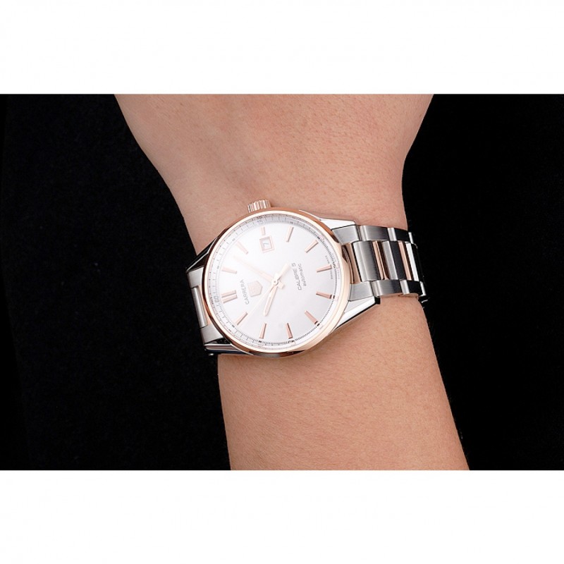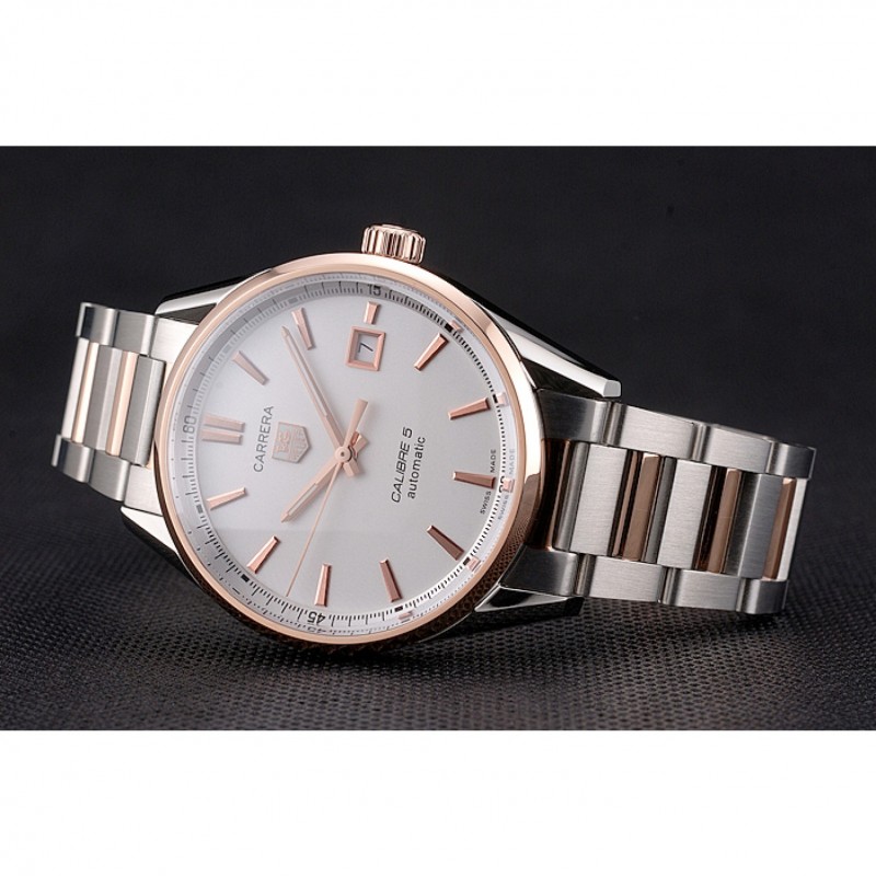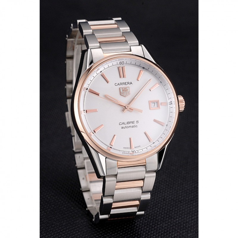 1 avis pour Suisse Tag Heuer Carrera Calibre 5 Cadran Blanc Cas Rose d’or Bracelet Deux Tone
