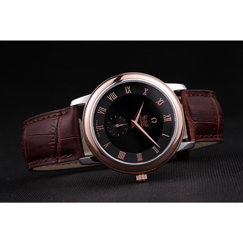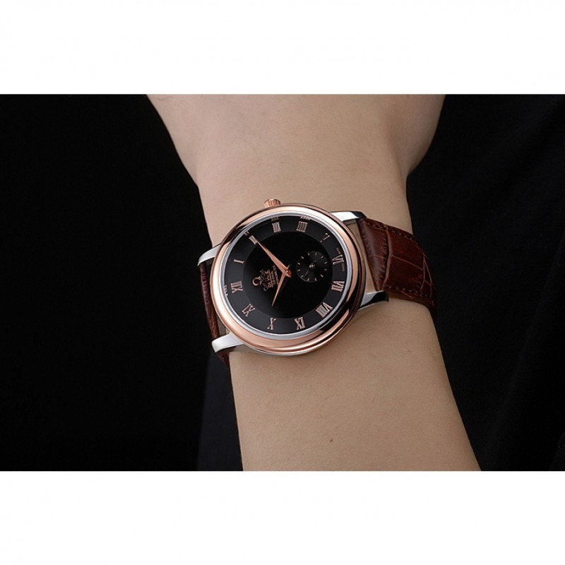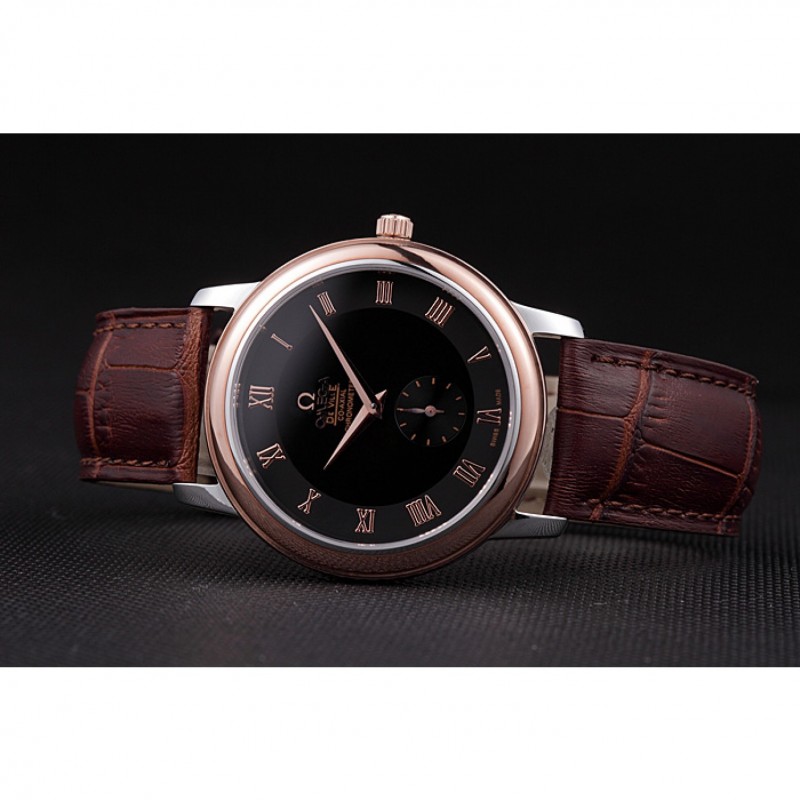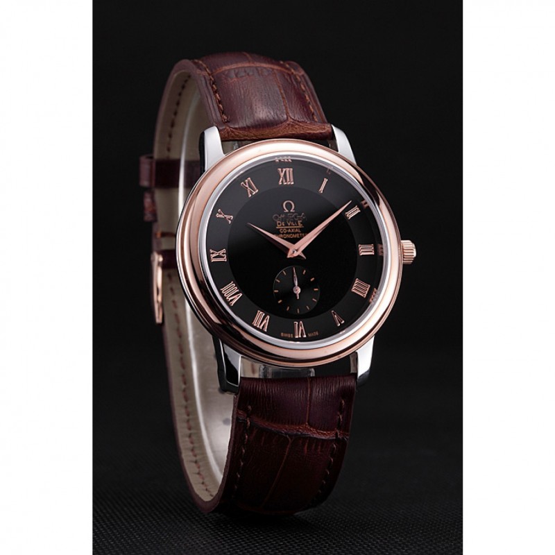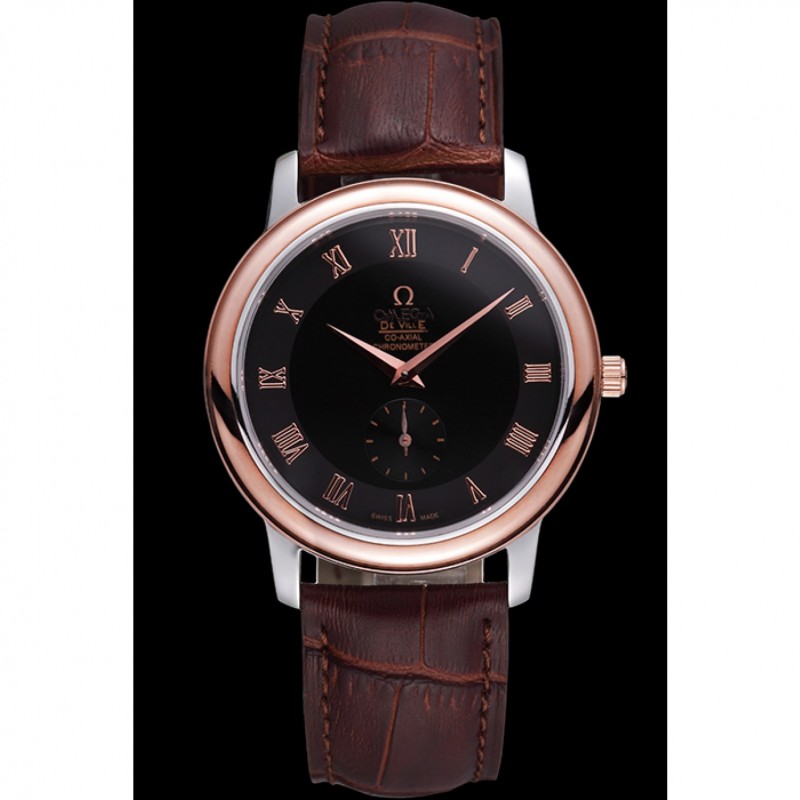Bracelet:logo et la chaleur Omega croco brun gaufrés sangle avec 18k rose plaqué or logo coupe fermoir crochet-boucle
