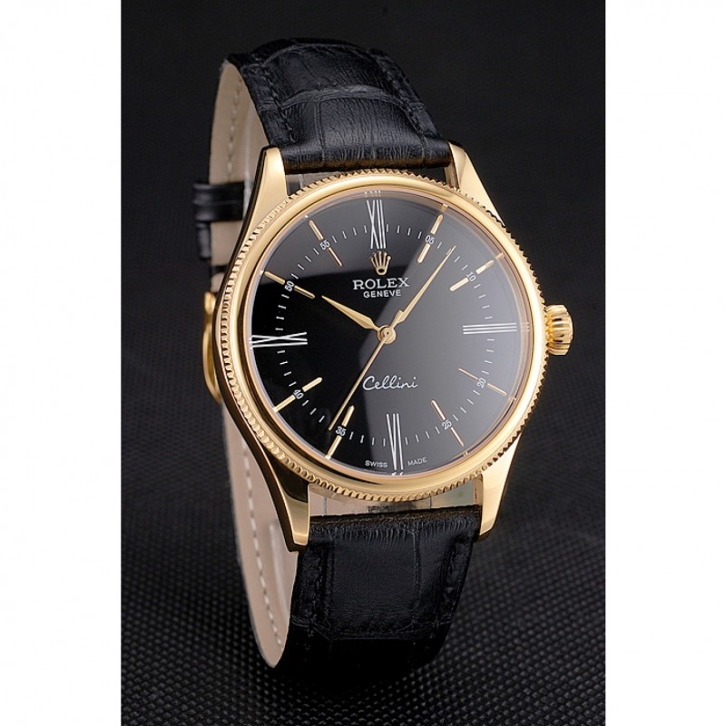 Bracelet:Rolex et logo chaleur bracelet en cuir croco noir avec logo Rolex gravé or jaune 18 carats plaqué fermoir crochet boucle