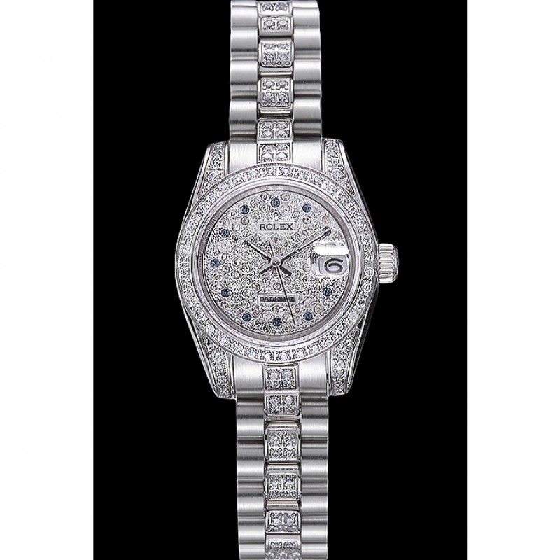 Bracelet:Diamond incrustée maillons en acier inoxydable poli bracelet avec cutwork Rolex boucle déployante logo