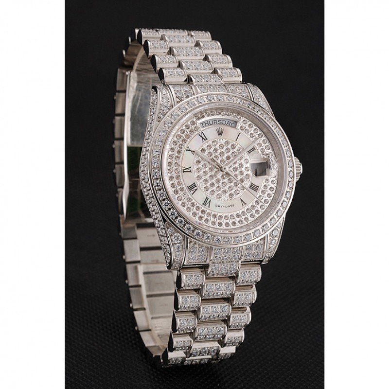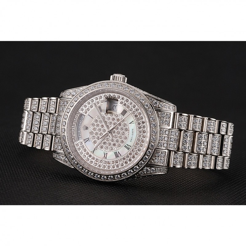 J’adore ces looks classiques et cela me va comme un rêve! Le bracelet en acier inoxydable poli avec des diamants incrustés est magnifique, et la lunette en acier inoxydable poli ajoute une touche d’élégance supplémentaire. La qualité suisse et le mouvement cinétique automatique assurent un fonctionnement parfait. Je suis vraiment impressionné par cette montre Rolex Day-Date Pave Dial!