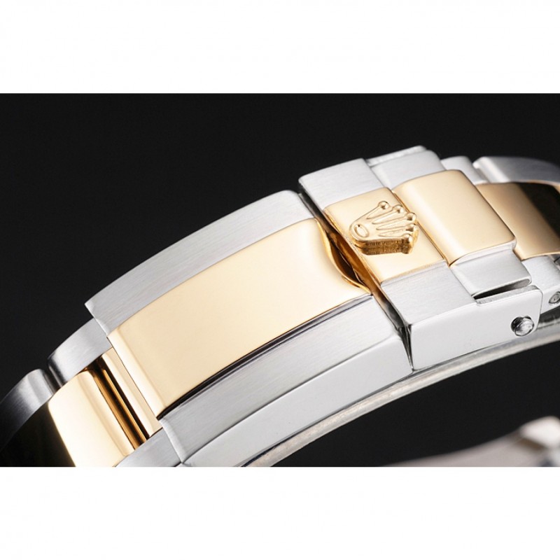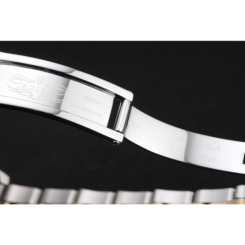 Bracelet:en acier inoxydable poli et 18k or rose plaqué bracelet lien avec 18k or rose plaqué logo Rolex sculpté boucle déployante