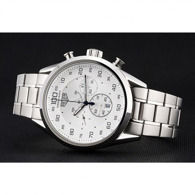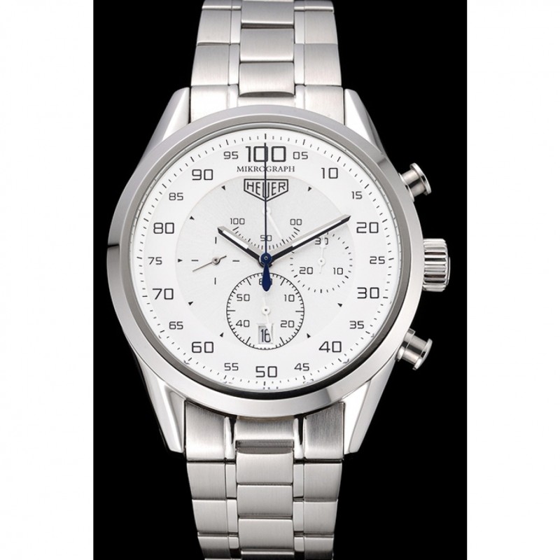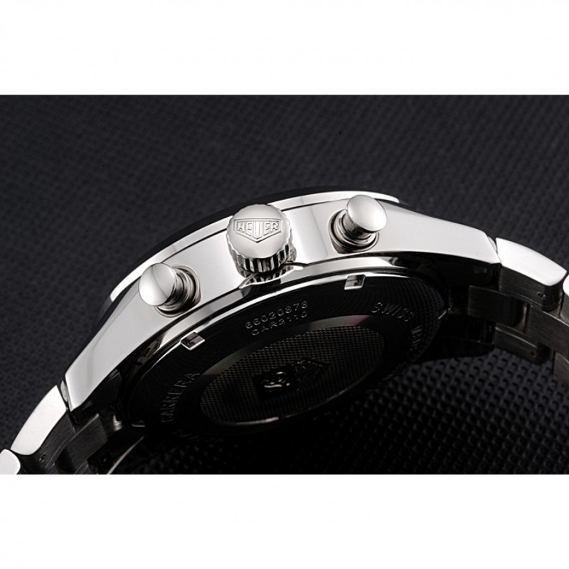Couronne :Tag Heuer logo gravé couronne en acier inoxydable cutwork poli avec des couronnes de boutons-poussoirs ronds de chaque côté de celui-ci