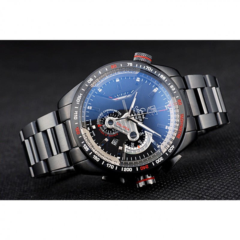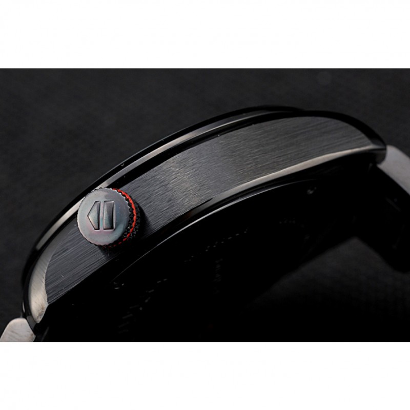 Couronne:couronne cutwork ion plaqué avec Tag Heuer logo et des garnitures de bande rouge et deux couronnes à bouton-poussoir longues de chaque côté de celui-ci, plus un logo gravé couronne ionique plaqué avec garniture bande rouge le coin supérieur opposé