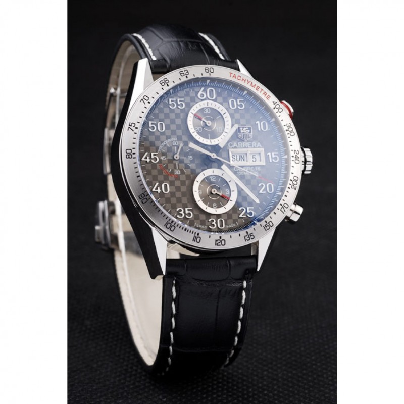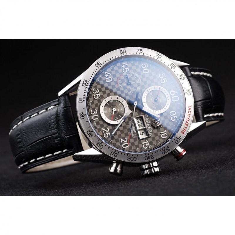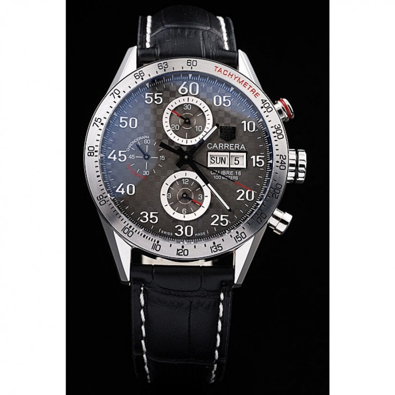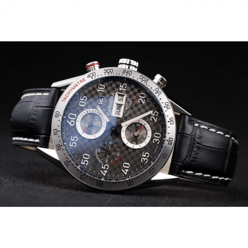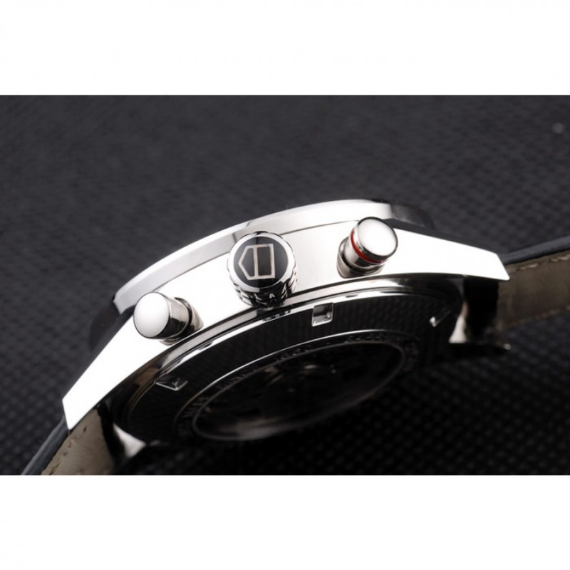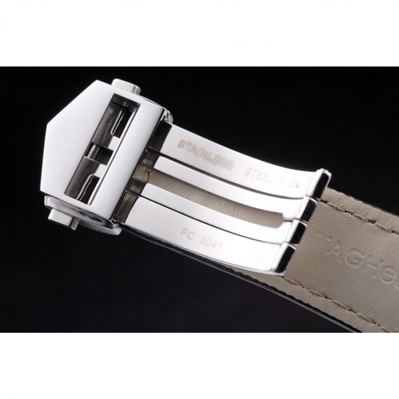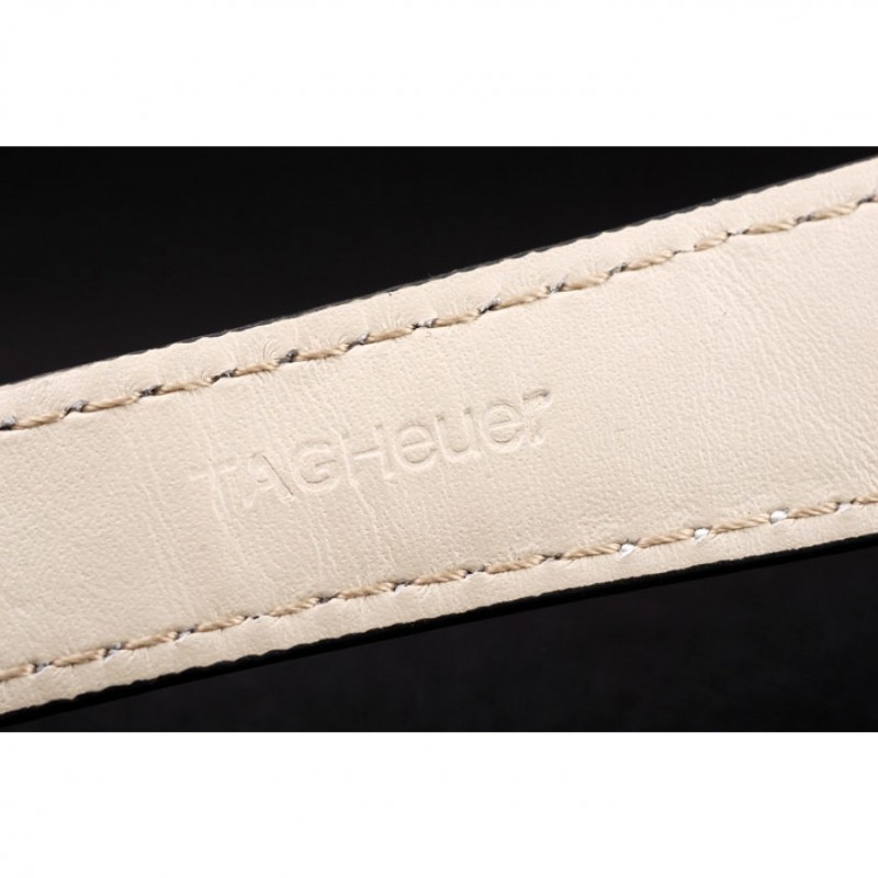 Bracelet:Tag chaleur Heuer relief crocodile noir bracelet en cuir avec couture blanche et la libération à bouton-poussoir en acier inoxydable brossé plier en boucle avec Tag Heuer gravure