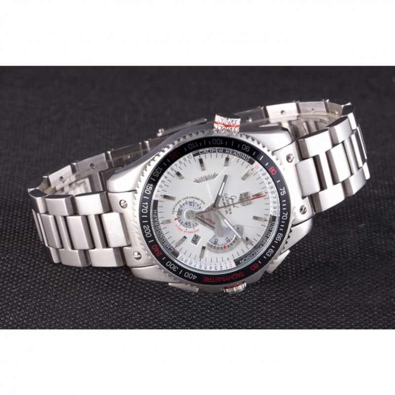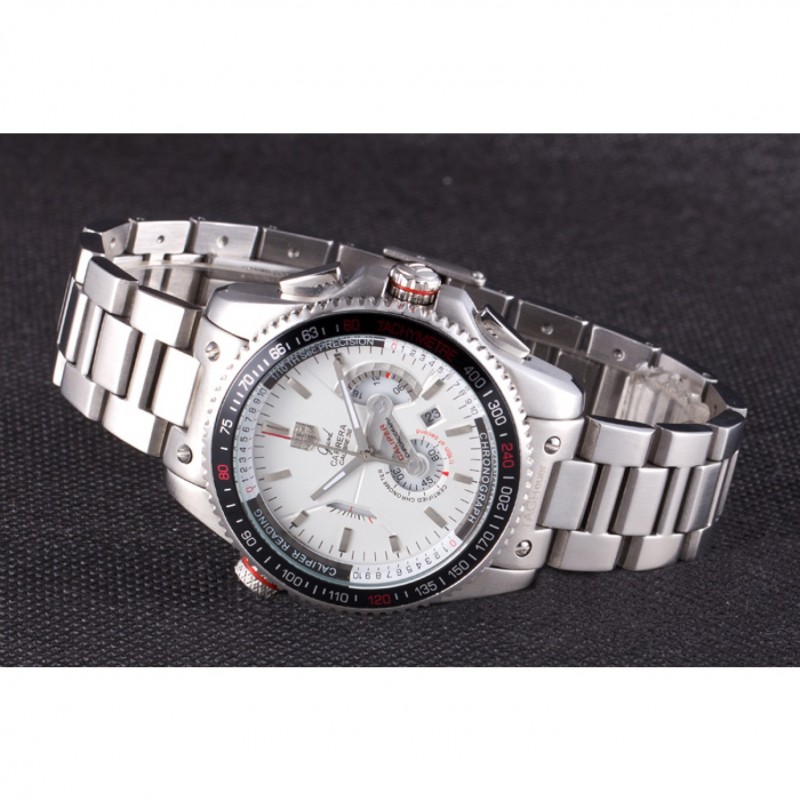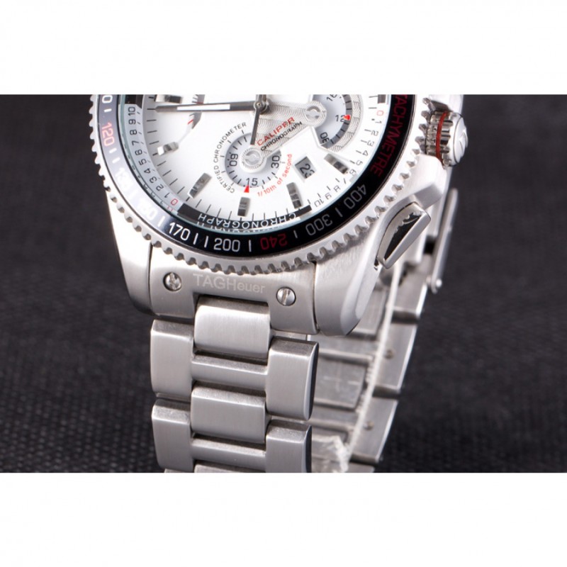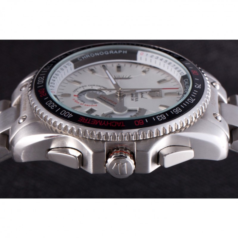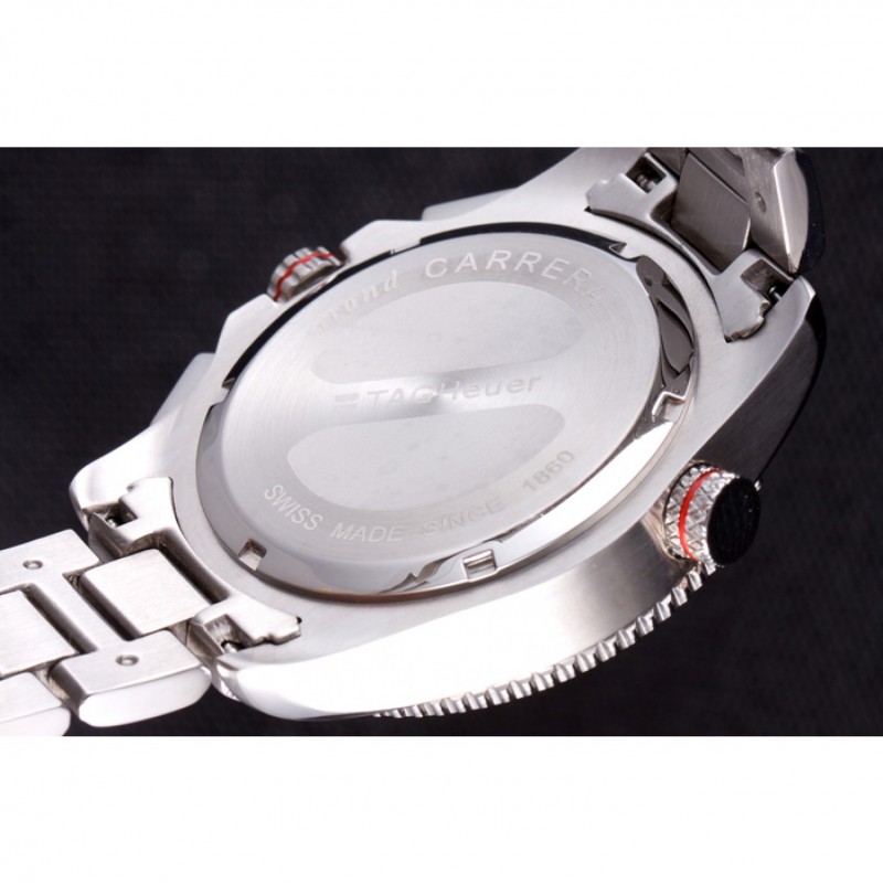 Couronne:acier inoxydable poli couronne cutwork avec Tag Heuer logo ainsi que deux couronnes supplémentaires de chaque côté et l’autre sur le coin supérieur opposé
