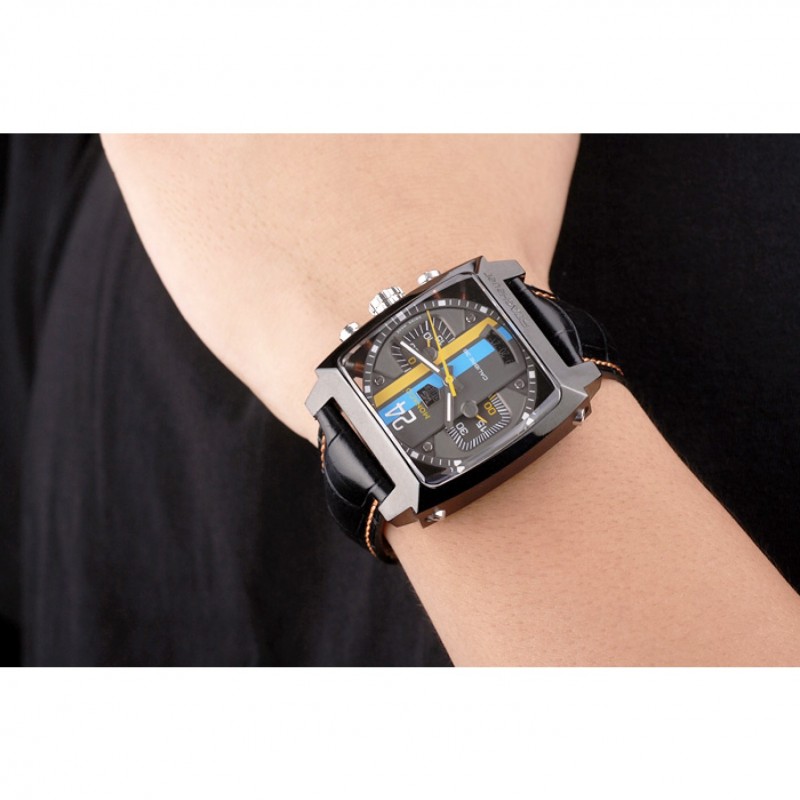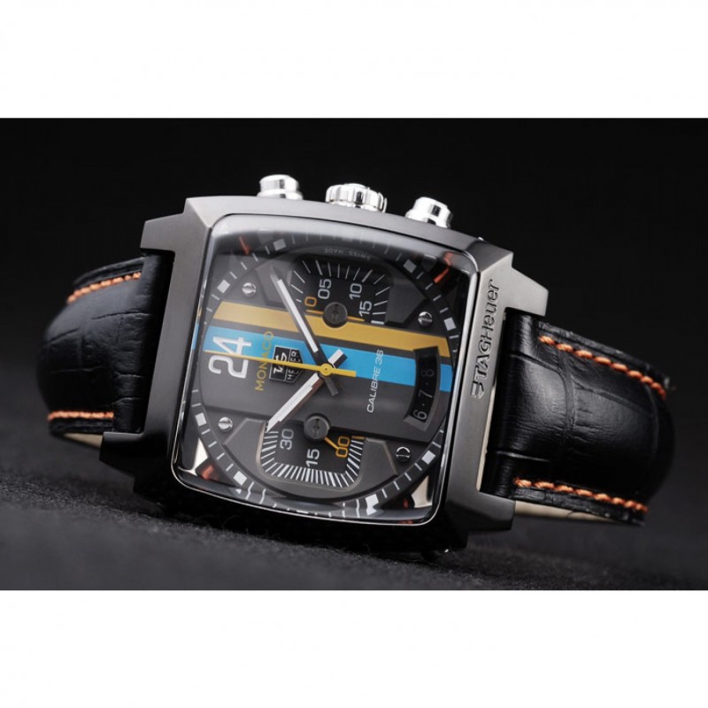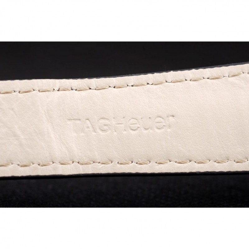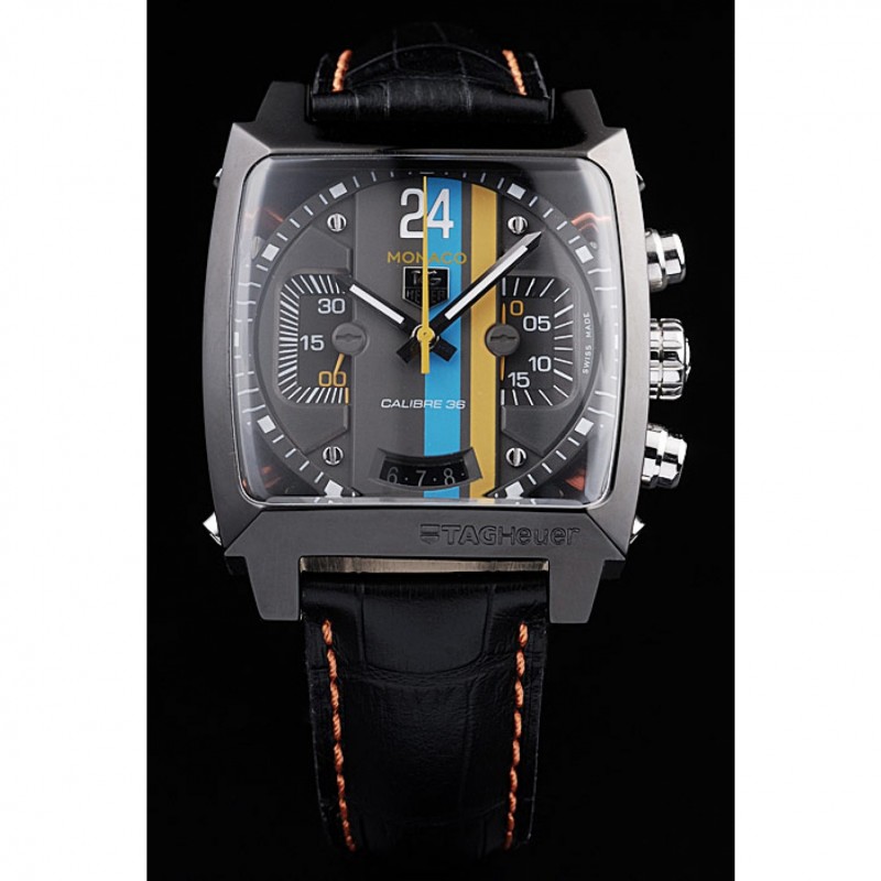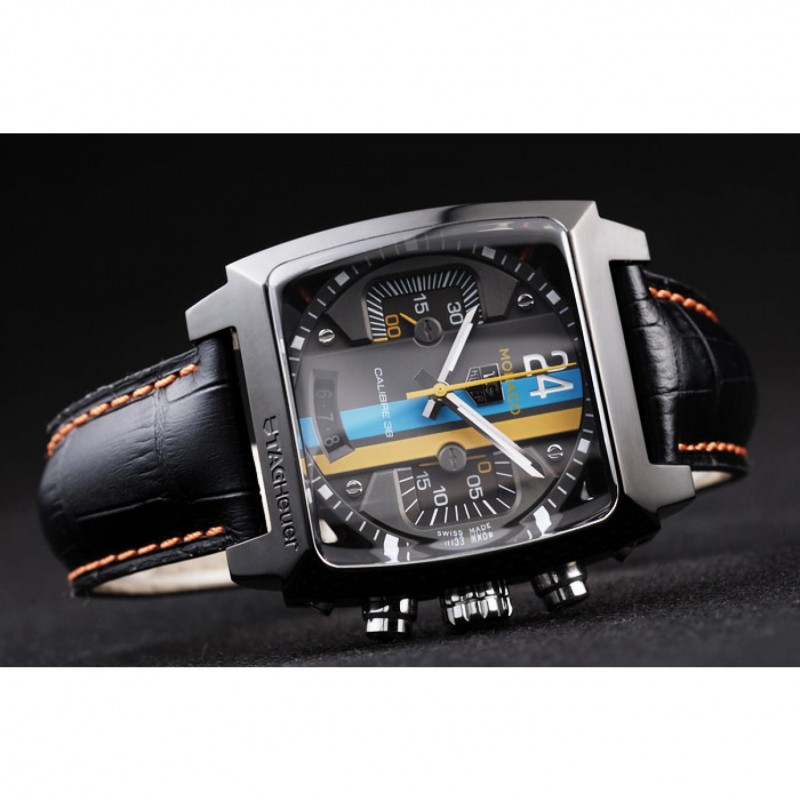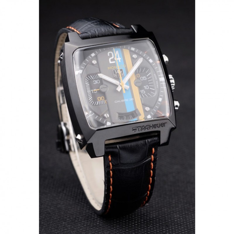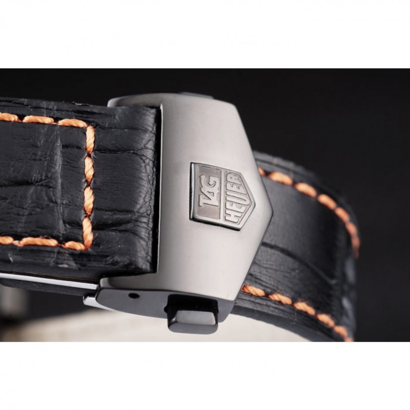 Bracelet:Tag Heuer chaleur bracelet en cuir gaufré crocodile noir avec coutures orange et bouton-poussoir placage ionique libération de pliage en boucle avec Tag Heuer gravure